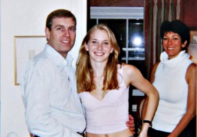 The Duke of York with a young Virginia Giuffre and Ghislaine Maxwell (right) (Picture: PA).